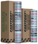 Fastfoot® is made of high-density polyethylene fabric. A 100’ roll of Fastfoot® forms the same amount of concrete as 1,500 pounds of lumber. It’s significantly less expensive than using dimensional lumber for footing forms. Fastfoot® prevents concrete damage to screed boards and stakes. Your 2x4s and stakes can be reused indefinitely. It adapts to uneven ground and rock. Special coloured width lines allow it to be adjusted to accommodate uneven excavations without the need for additional lumber.